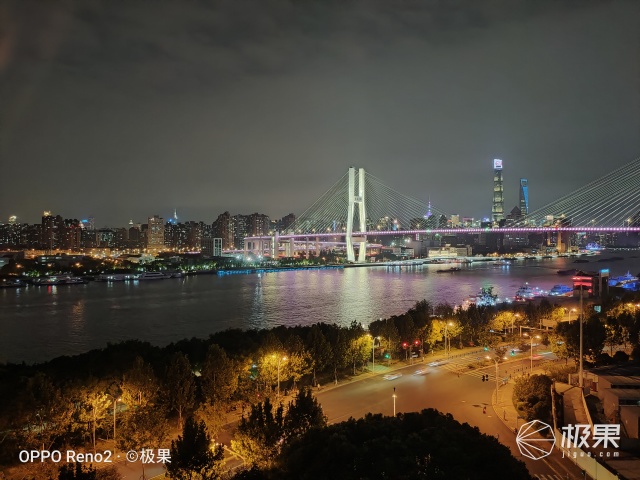 夜景的亮度、和高光压制比较到位,亮部的细节看上去也比较干净,不过,画面中的暗部如天空等还是能分辨出噪点与涂抹痕迹,但整体表现拿来发个朋友圈分享一下还是能收获不少点赞的。